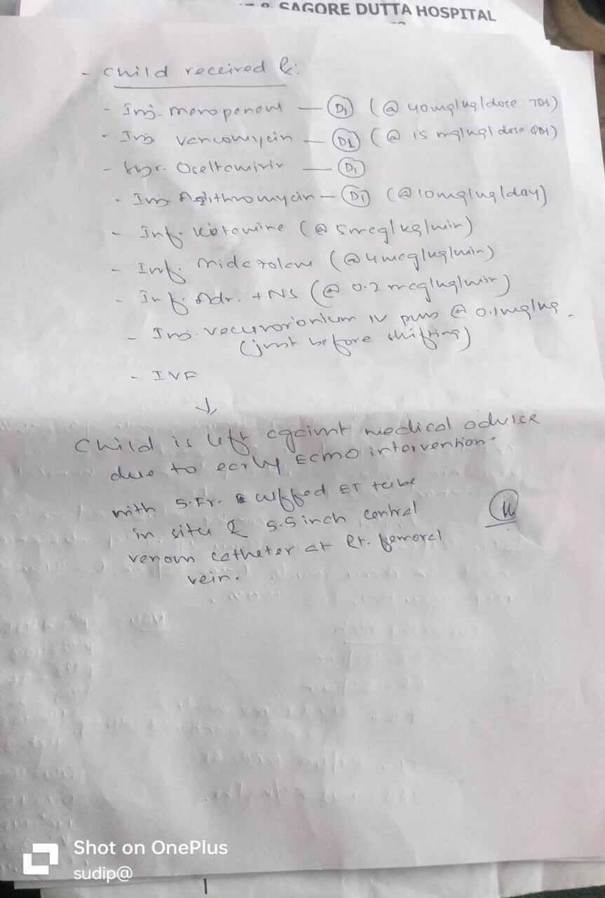The doctors at Manipal EM By Pass, Kolkata, told us Ayansh needs prolonged hospitalisation in critical care, liquid feeding, ECMO support, ventilator care, continuous monitoring, antibiotic treatment and supportive care.
